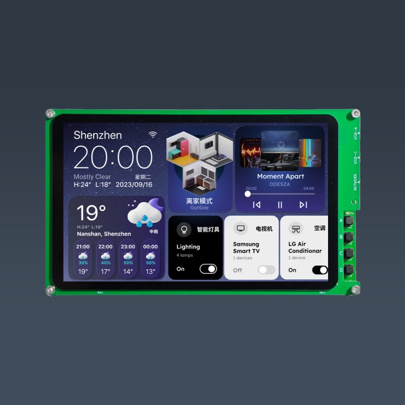 开发板驱动MIPI接口分辨率为1024*600的IPS触屏,刷新率高达60FPS;同时主板可搭载乐鑫ESP32-H2及ESP32-C6模组,轻松选配Wi-Fi 6、BLE、Zigbee、Thread通信;同时还拥有丰富的接口如RS485、RJ45、CAN、USB、SPK、TF卡、ADC、GPIO等;开发板提供全开源SDK,让开发更高效、便捷!