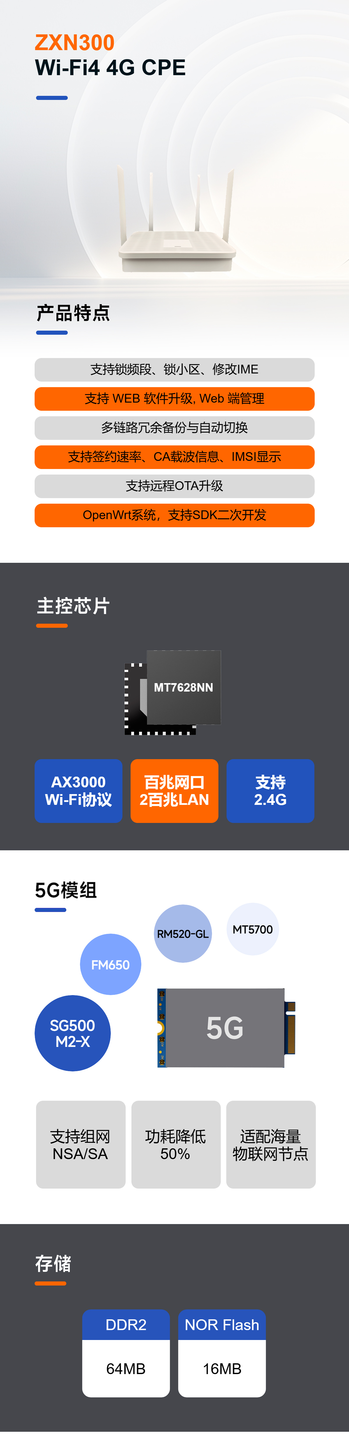 ZXN300 4G CPE,一款专为轻量级场景设计的智能无线接入路由器!无需复杂布线,插卡即用,以百元级价格提供企业级可靠,稳定、经济的网络接入满足家庭与小微企业的需求!
