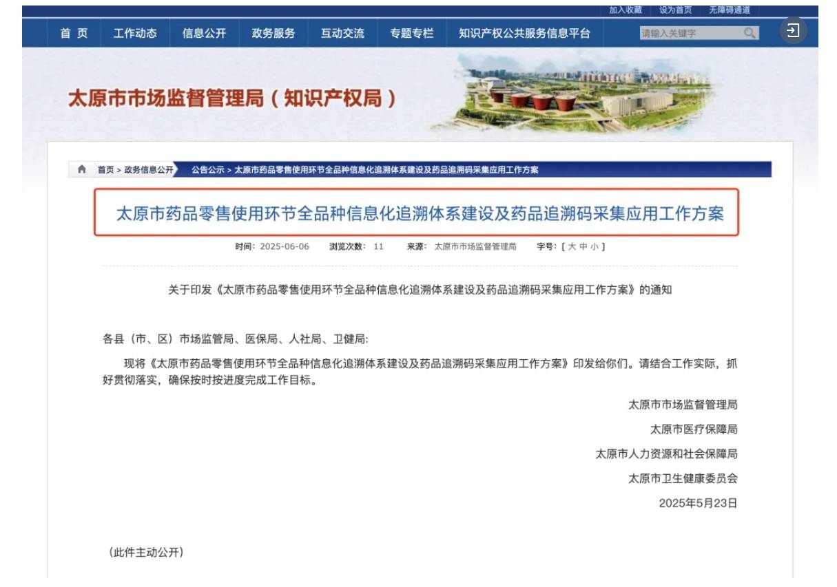 敏捷云一物一码追溯系统将通过功能优化、应用场景优化、数据管理优化和实施督导优化,全面支持太原市药品追溯体系的建设与升级,助力实现药品全流程、全品种、全环节的追溯管理,确保药品安全与医保基金规范使用