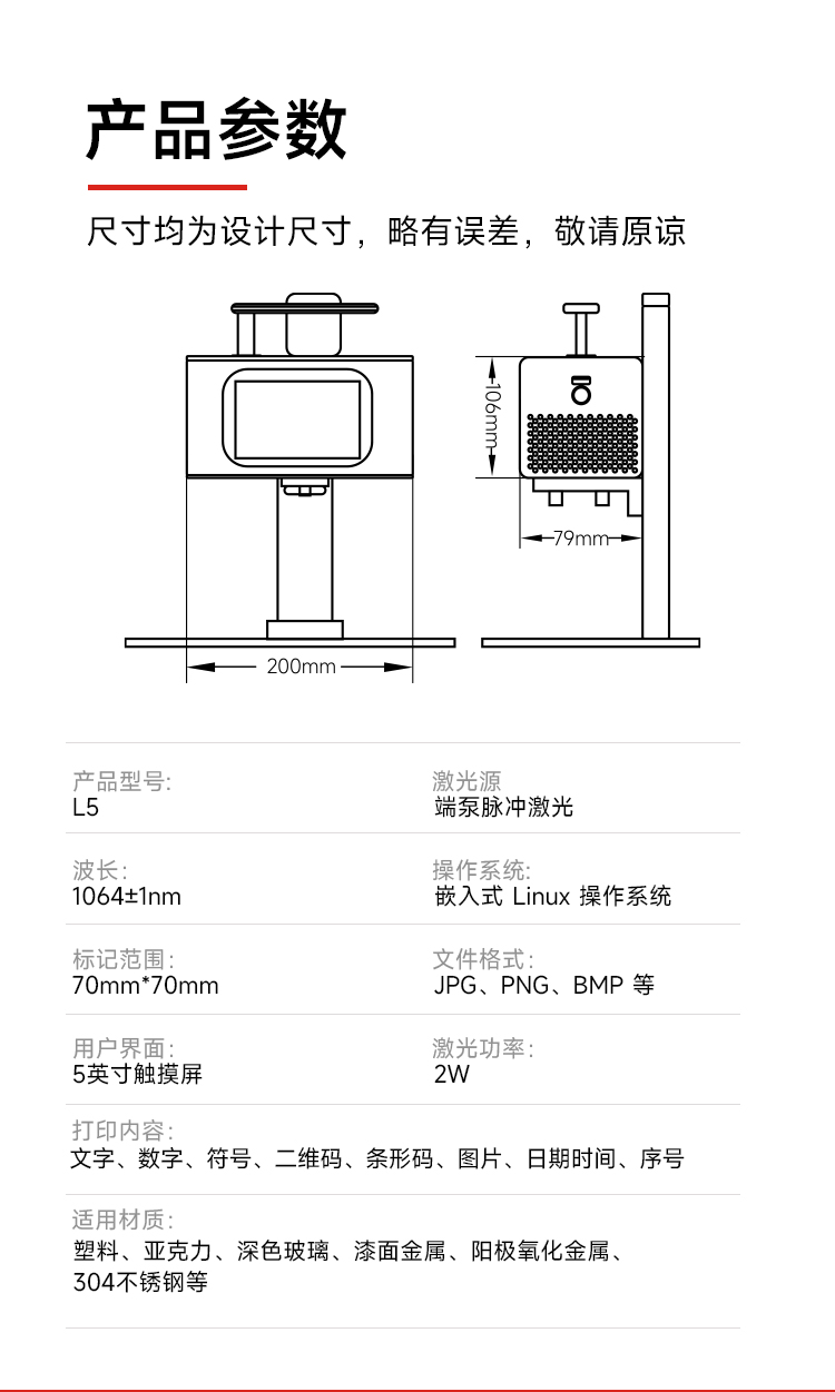 1064nm 激光光源,适用于雕刻大部分金属和有色塑料